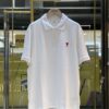 เสื้อยืดคอปกโปโล จากแบรนด์ Ami ปักลายโลโก้หัวใจสีแดงอันเป็นเอกลักษณ์ของแบรนด์ ด้านหลังคอเสื้อปักชื่อแบรนด์ตัวนูน