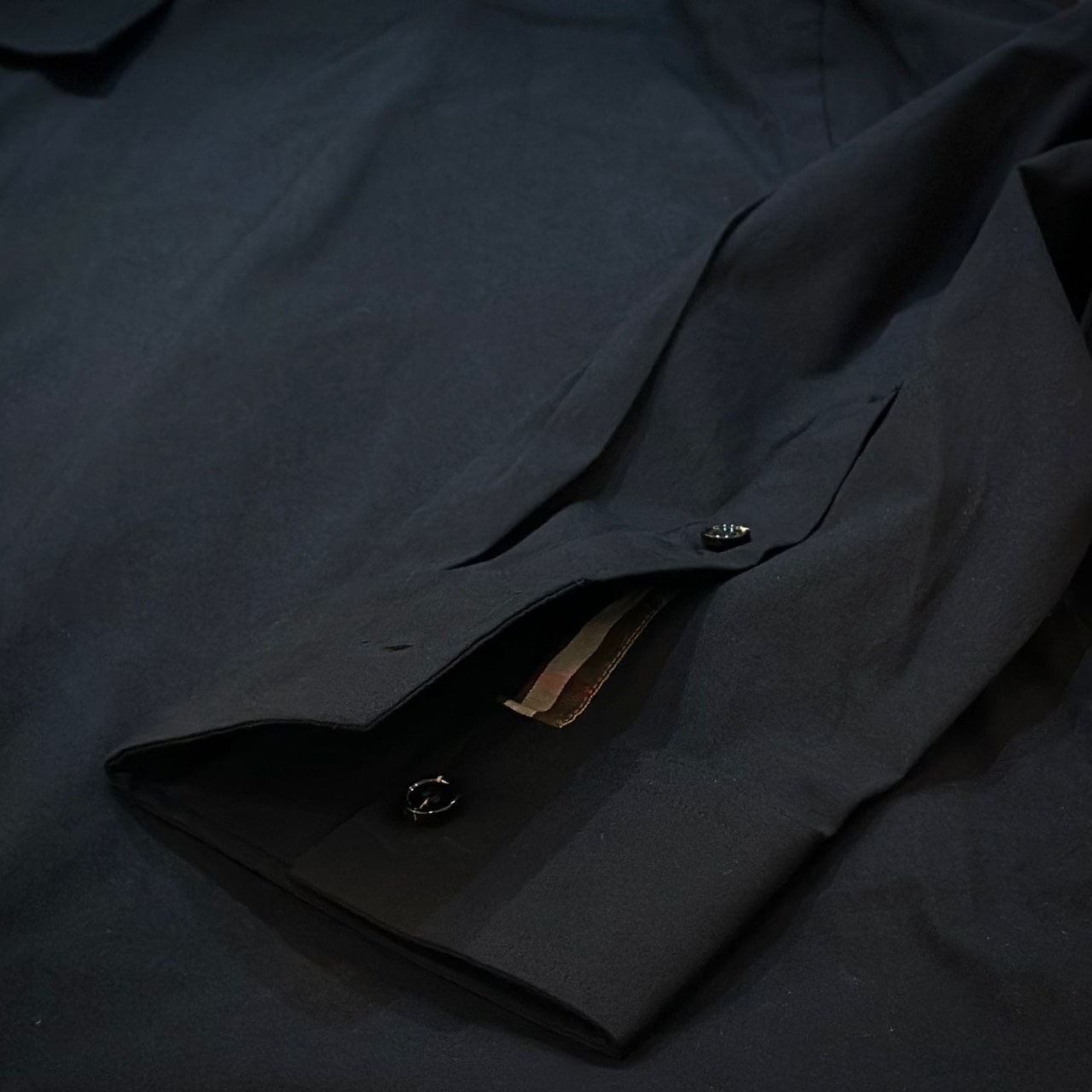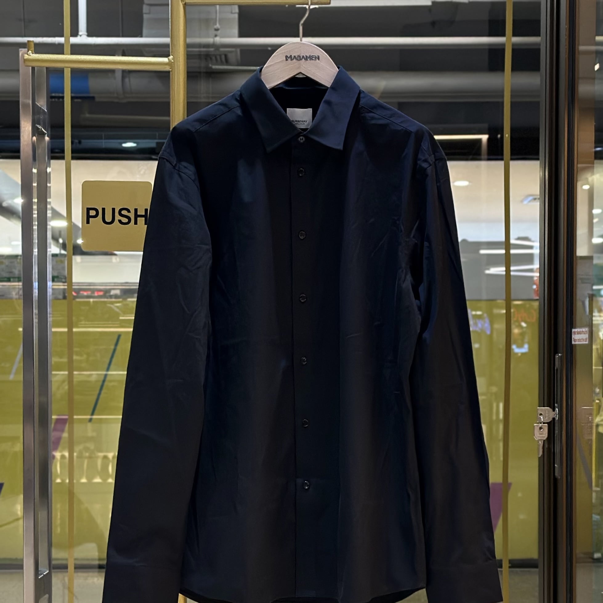 เสื้อเชิ้ตแขนยาว จากแบรนด์ Burberry ดีไซน์แบบเรียบ ๆ ตกแต่งลายแพทเทิร์นที่แนวกระดุม และใต้แนวแขนเสื้อ