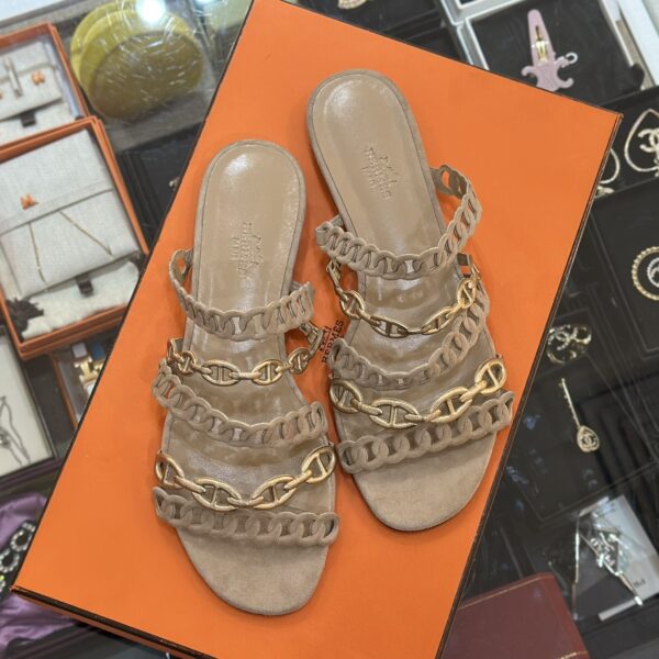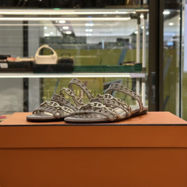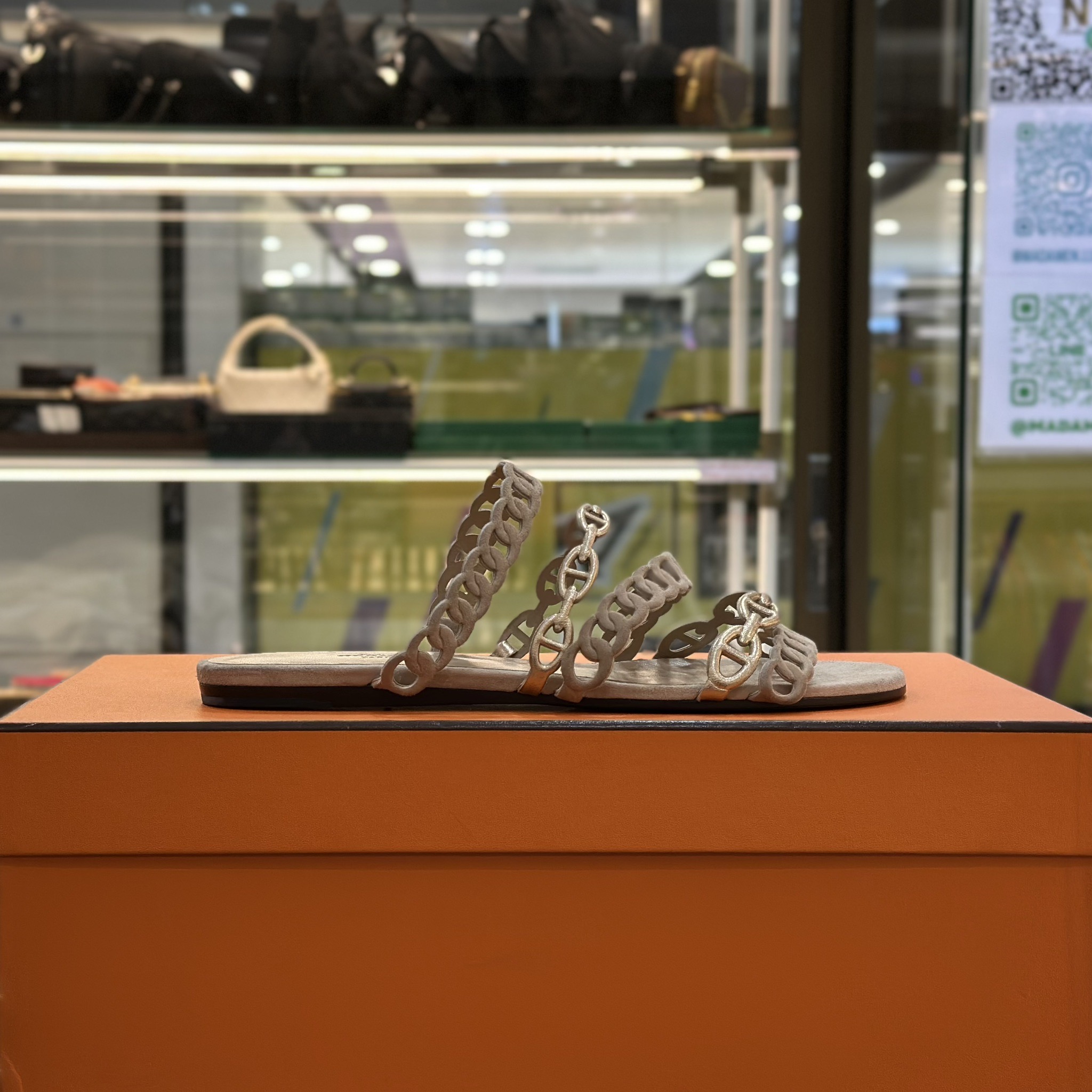 รองเท้าแตะ สำหรับผู้หญิง จากแบรนด์ Hermes ดีไซน์สายรัดแบบโซ่ถัก Chaine d’Ancre