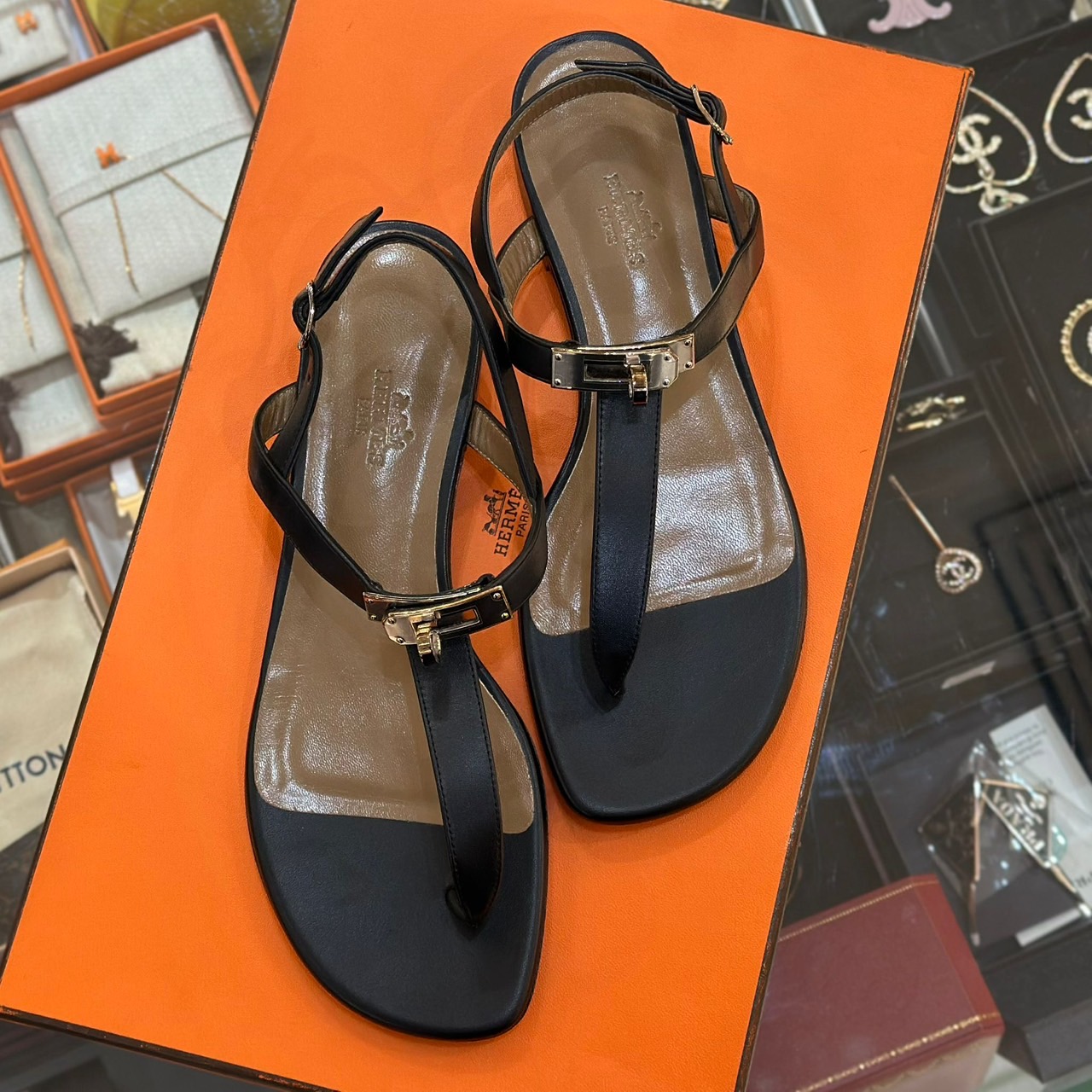 รองเท้าแตะผู้หญิงแบบรัดส้น จากแบรนด์ Hermes สายรัดด้านหน้าติด Buckle รุ่น Kelly