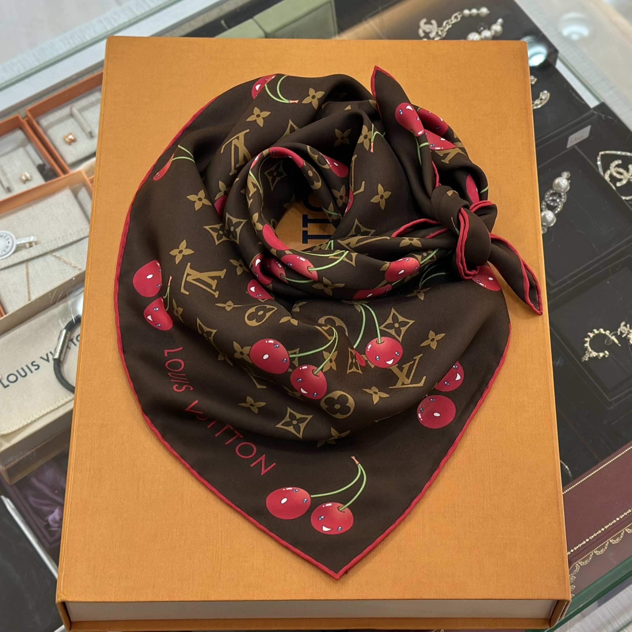 LOUIS VUITTON x Takashi Murakami Monogram Cerise Square Scarf
