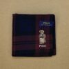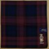ผ้าเช็ดหน้าลายตาราง จากแบรนด์ Polo Ralph Lauren ปักลายหมี Polo Bear แต่งตัวแบบเรียบร้อย สวมเสื้อโค้ทและแว่นที่มุมผ้า