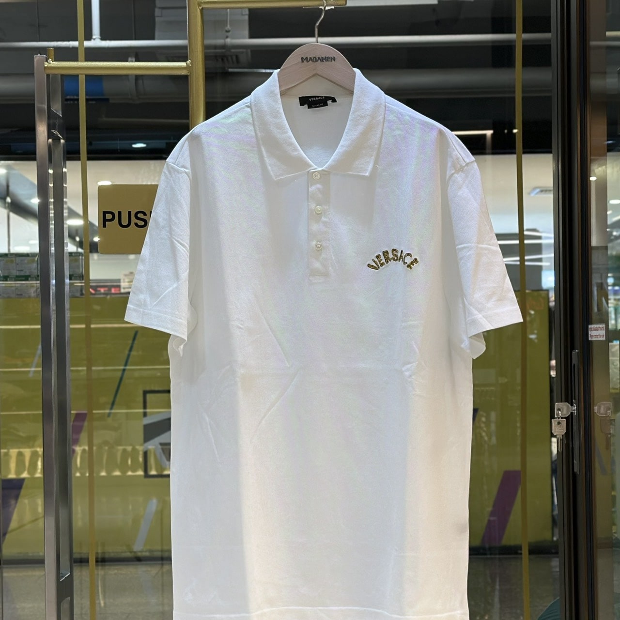 เสื้อยืดคอปกโปโล จากแบรนด์ Versace สำหรับผู้ชาย พิมพ์ชื่อแบรนด์แบบโค้งบนอกเสื้อ