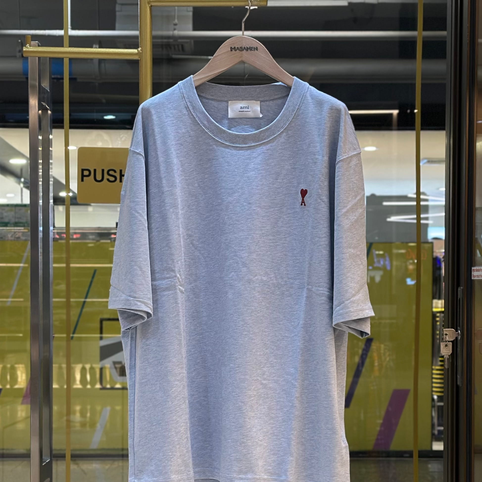 เสื้อยืดคอกลมแขนสั้น จากแบรนด์ Ami ปักโลโก้ Ami de Coeur สีแดงที่อกเสื้อ