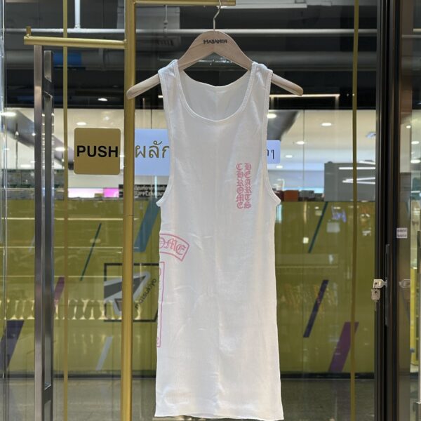 เสื้อกล้ามผู้หญิง จากแบรนด์ Chrome Hearts พิมพ์ลายโลโก้สีชมพูที่อกเสื้อและด้านข้างลำตัว