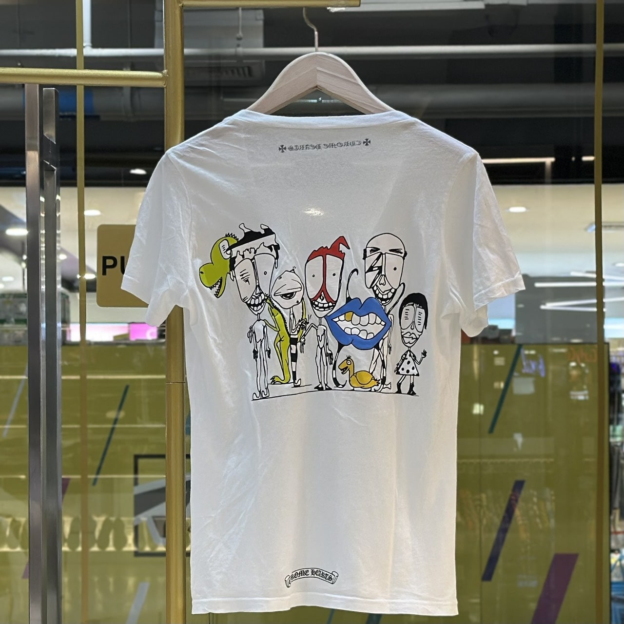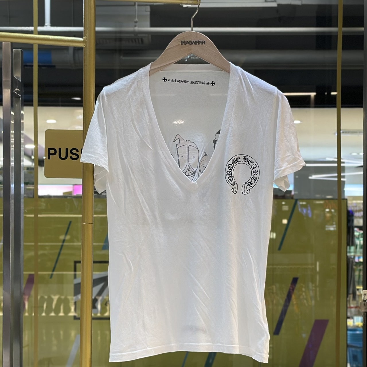 เสื้อยืดคอวี สำหรับผู้หญิง จากแบรนด์ Chrome Hearts ด้านหลังพิมพ์ลายตัวการ์ตูน