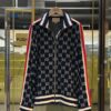เสื้อแจ็คเก็ตซิปรูด จากแบรนด์ Gucci ลวดลาย GG ทั่วทั้งตัว คาดแถบสีแดงตามแนวแขน