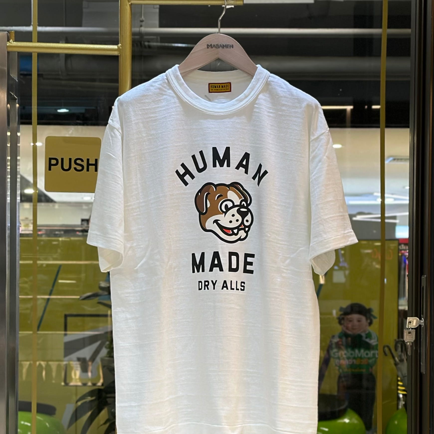 เสื้อยืดคอกลมแขนสั้น จากแบรนด์ Human Made พิมพ์ลายกราฟฟิคสุนัขพันธ์บูลด็อกสไตล์การ์ตูนที่กลางอกเสื้อ