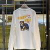 เสื้อยืดคอกลมแขนยาว จากแบรนด์ Human Made ปักแพทช์โลโก้หัวใจสีแดงขนาดเล็กที่อกเสื้อ ด้านหลังพิมพ์ลายกราฟฟิคสุนัขในชุดเอี๊ยมผ้าเดนิม