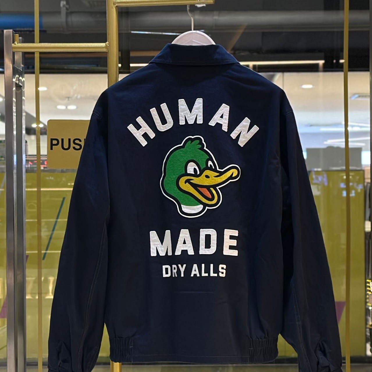 เสื้อแจ็คเก็ต สำหรับผู้ชาย จากแบรนด์ Human Made ปักลายเป็ดสีเขียวพร้อมโลโก้ที่ด้านหลังเสื้อ