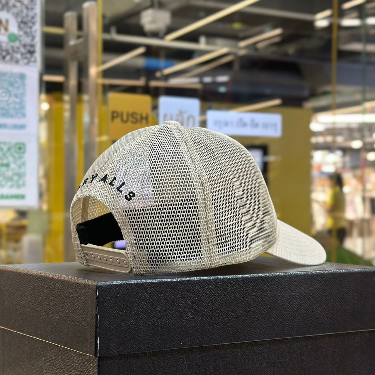 หมวกแก๊ปแบบปรับขนาดได้ จากแบรนด์ Human Made ด้านหน้าปักแพทช์โลโก้หัวใจขนาดเล็กสีเขียวของแบรนด์ ด้านหลังดีไซน์แบบระบายอากาศ