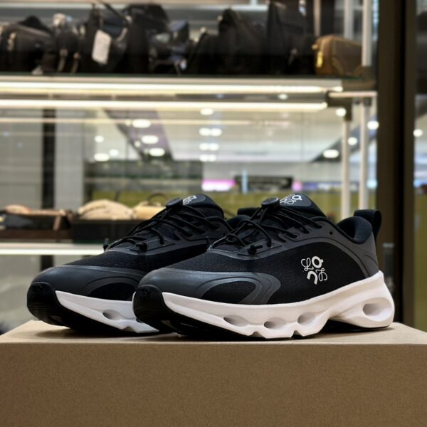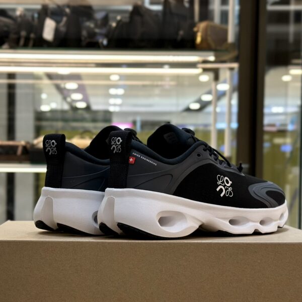 รองเท้าผ้าใบ ผลงานคอลแลประหว่างแบรนด์ Loewe และ On รุ่น Cloudsolo ผลิตจากโพลีเอสเตอร์รีไซเคิล พร้อมพื้นโฟมเทคโนโลยี CloudTec ใช้ผ้าตาข่ายแบบ Engineered mesh ในส่วนด้านบน ทั้งยังมี TPU Overlay ช่วยเสริมความทนทาน มีเชือกรองเท้าแบบสายรัดยืด ด้านข้างตกแต่งโลโก้ของทั้งสองแบรนด์