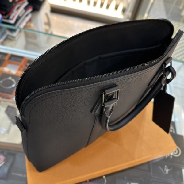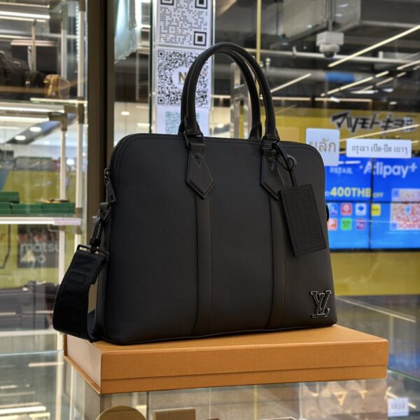 กระเป๋าเอกสารหูจับคู่ จากแบรนด์ Louis Vuitton ด้านในมีช่องบุนวมสำหรับใส่แล็ปท็อป และช่องแบบเรียบอีก 2 ช่อง มุมขวาด้านล่างของกระเป๋าประดับอักษรย่อ LV โลหะ