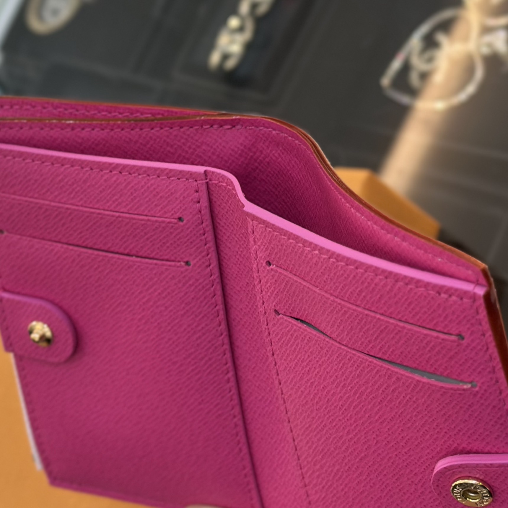 กระเป๋าสตางค์แบบพับ รุ่น Lisa จากแบรนด์ Louis Vuitton คอลเล็กชั่นพิเศษ LV x TM 130th Monogram Anniversary สีสันสดใส เปิด-ปิดด้วยตัวล็อคแบบกระดุมสแน็ป ภายในสีชมพูสดใสตัดกับแคนวาสสีขาว มีช่องซิปใส่เหรียญ ช่องใส่ธนบัตร ช่องแบ่งแบบเรียบ และช่องใส่บัตร 4 ช่อง