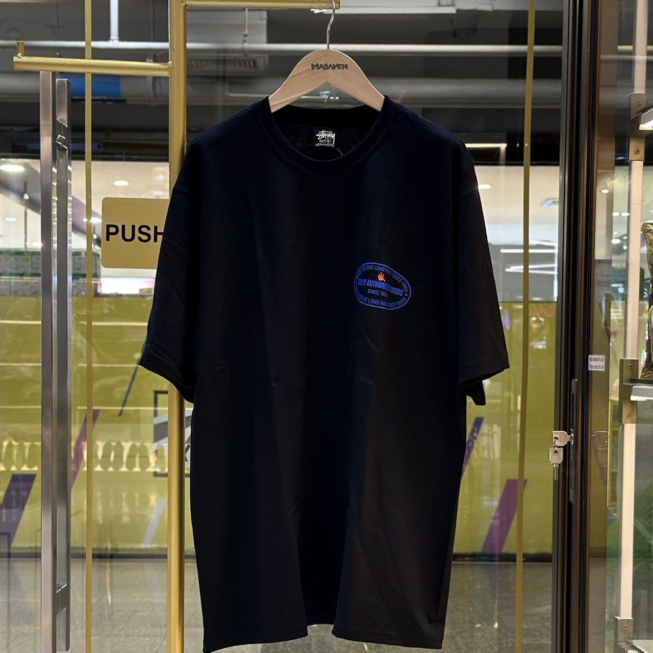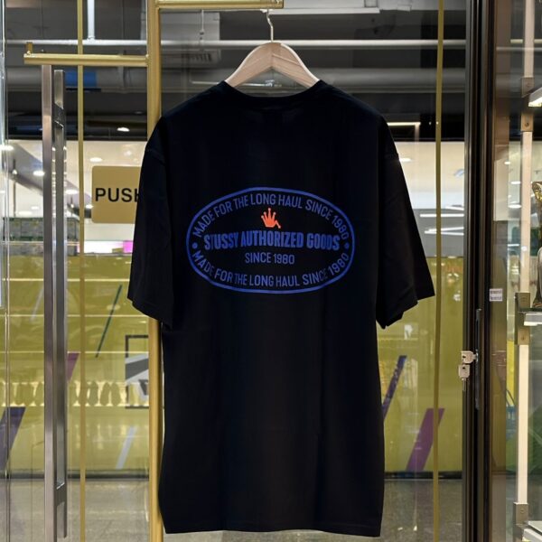 เสื้อยืดคอกลมแขนสั้น ดีไซน์ Unisex จากแบรนด์ Stussy พิมพ์ลายตราสินค้า Stussy Authorized Goods Since 1980